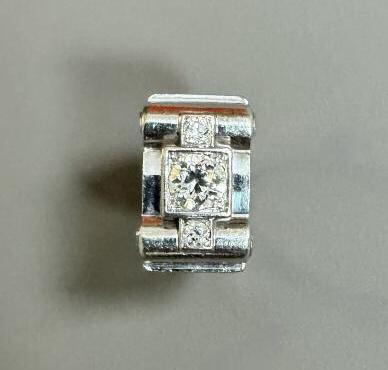 8 BAGUE TANK ANNÉES 1940 en platine et diamants, présentant un diamant taille brillant ancienne de plus de 1,40 carats
