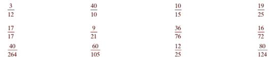 c) Simplifique cada fracción, pinte de color azul las fracciones irreducibles.