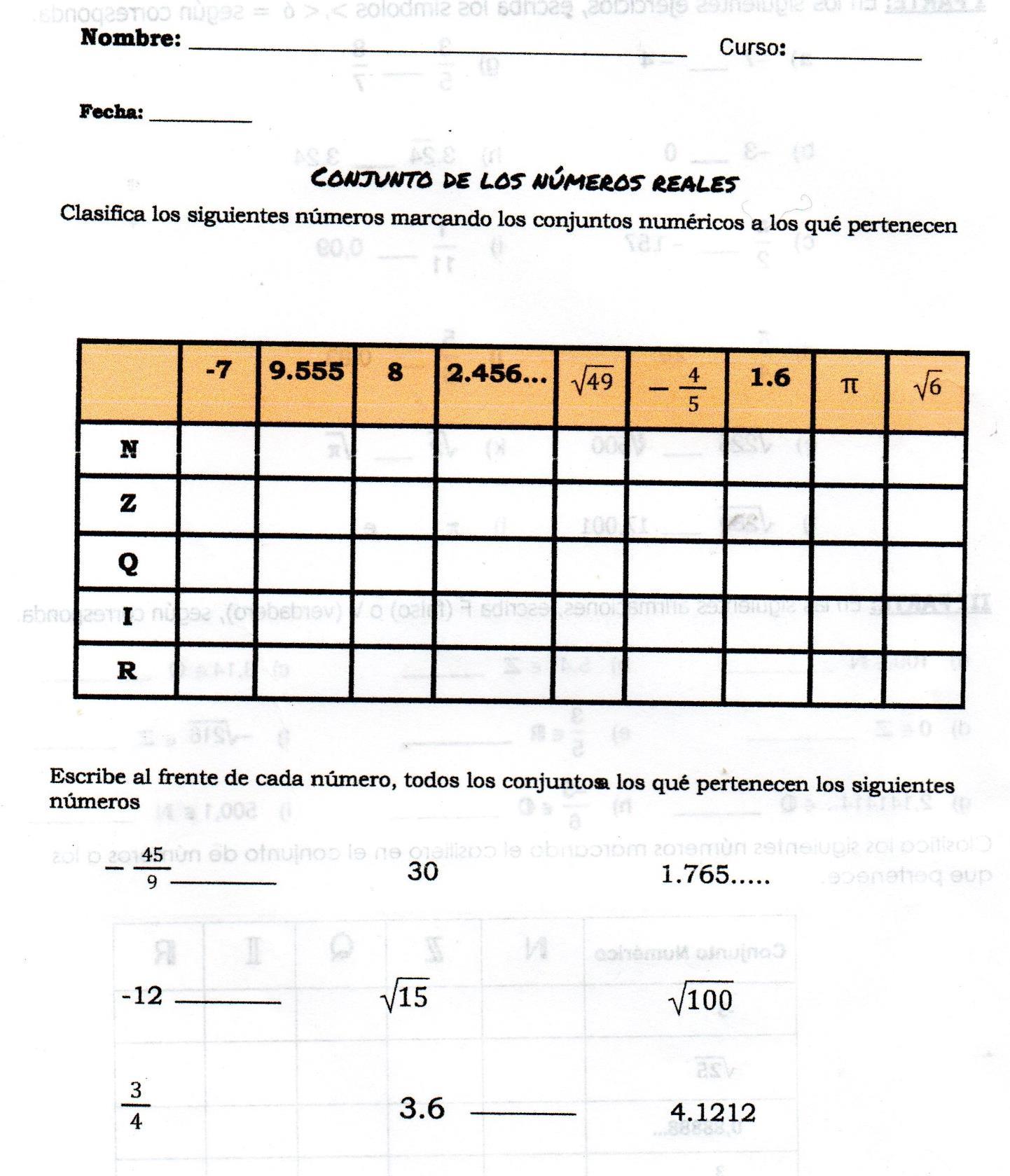 Identificar los diferentes conjuntos de números que integran los reales mediante el desarrollo de ejercicios.
