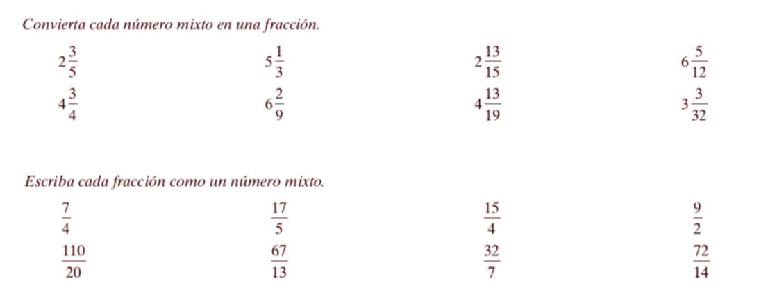 Fracción mixta: Se combina la fracción propia y los enteros.