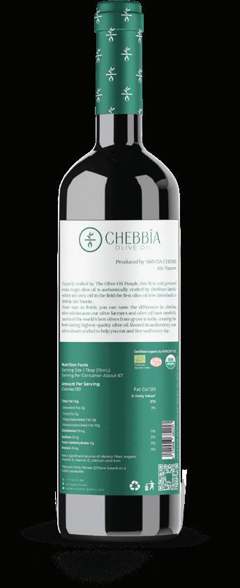 Ch bia is the First Cold Pressed Ext Vir n Olive Oil. His hist y be ns in Ain Yo es wh e the rst olive Tree was potted in 1949. Fr day e, o olive trees was th oughly n t ed by o olive oil f m s fr groves to t le. This olive oil was a ed by T isi olive oil exp ts.