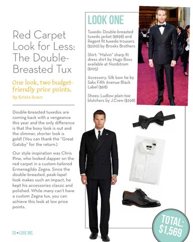 LOOK ONE Red Carpet Look for Less: The DoubleBreasted Tux One look, two budgetfriendly price points. By Krista Roser