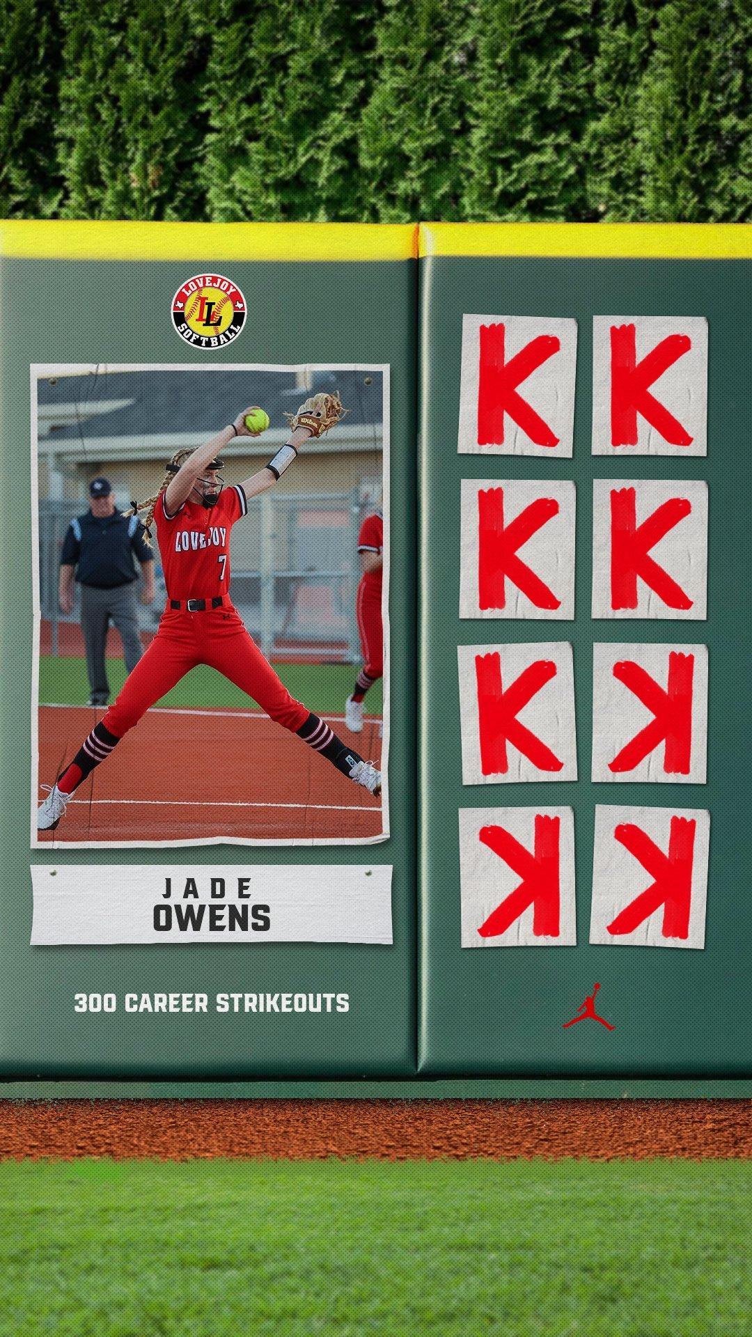 Congratulations to Jade Owens who reached 300 career strikeouts and currently has 303 with another 7 district games left plus playoffs. Jade had 130 her sophomore year, 104 Junior, and at 69 so far this year!
