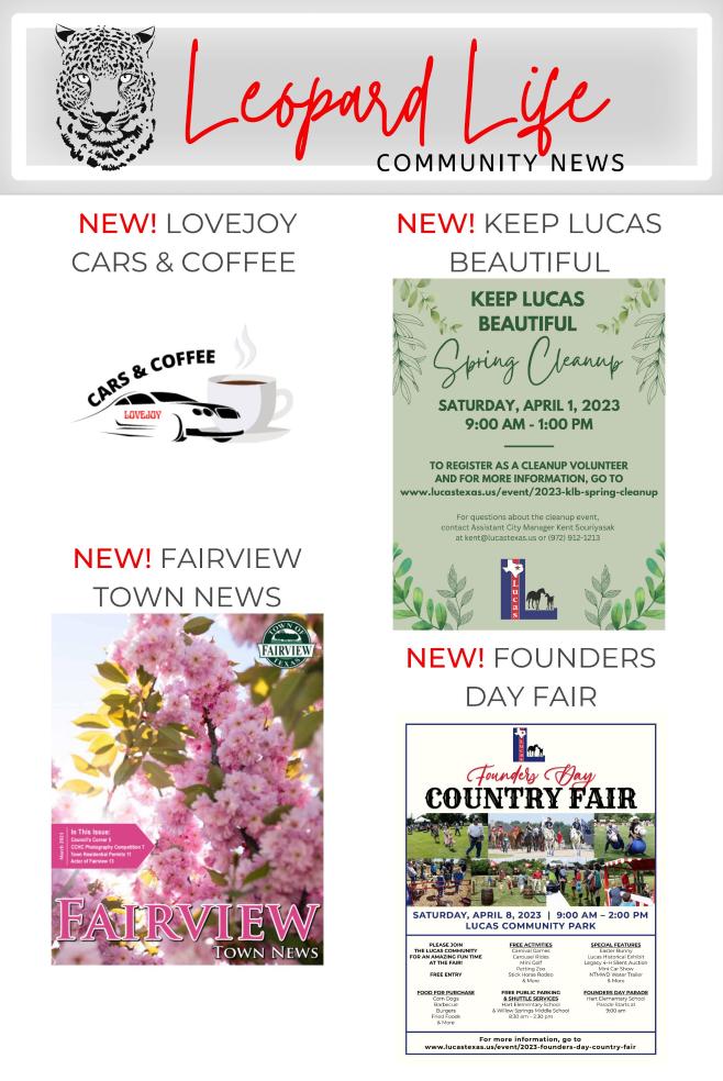 The information featured on the Community News website is submitted by community members. Lovejoy ISD is not affiliated with the organizations and does not claim to endorse them.