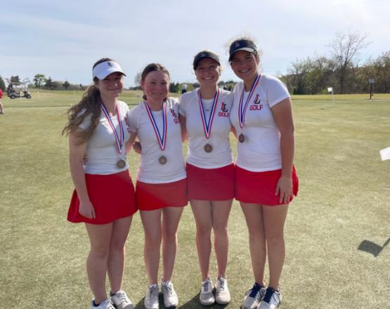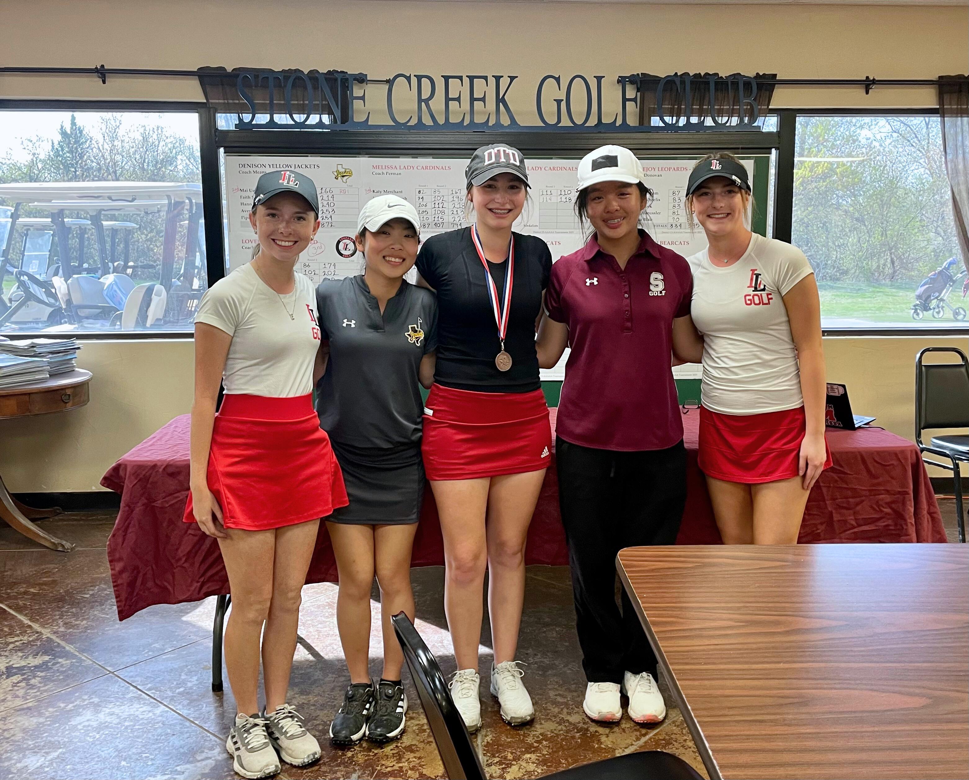 The Lovejoy girls Red Team finished in 3rd place, trailing McKinney North by a total of 16 strokes. The team was made up of Katelyn Coleman, Nola Carroll, Mackenize Manley, Olivia Nickell, and Natalie Breaux.