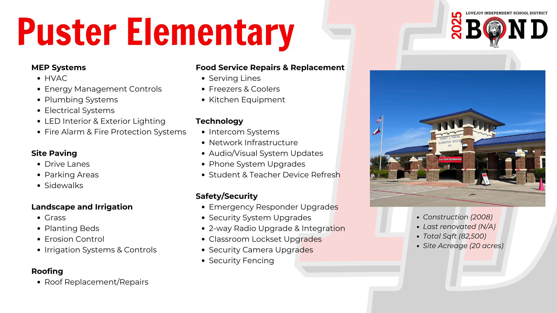 LovejoyISDBond2025willimpacteverystudentandeveryschool.Wehavecreateda websitewithinformationthatcanbeaccessedhere.Wealsoencourageyoutovisitour 2025BondFrequentlyAskedQuestionsfoundatthislink.