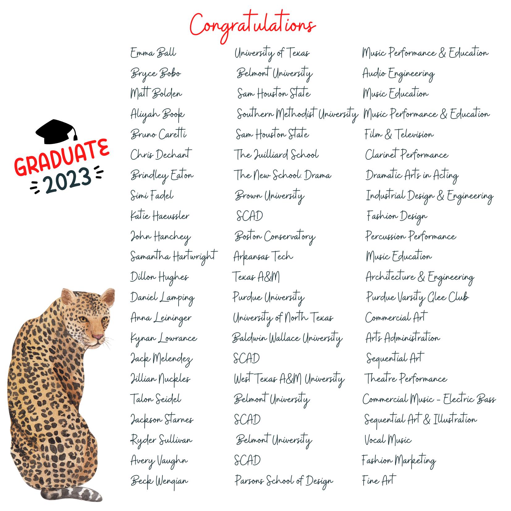 Congratulations to all of our Lovejoy Fine Arts 2023 Graduates, and especially this co-hort with plans to continue their education and college experiences in the performing and/or visual arts.