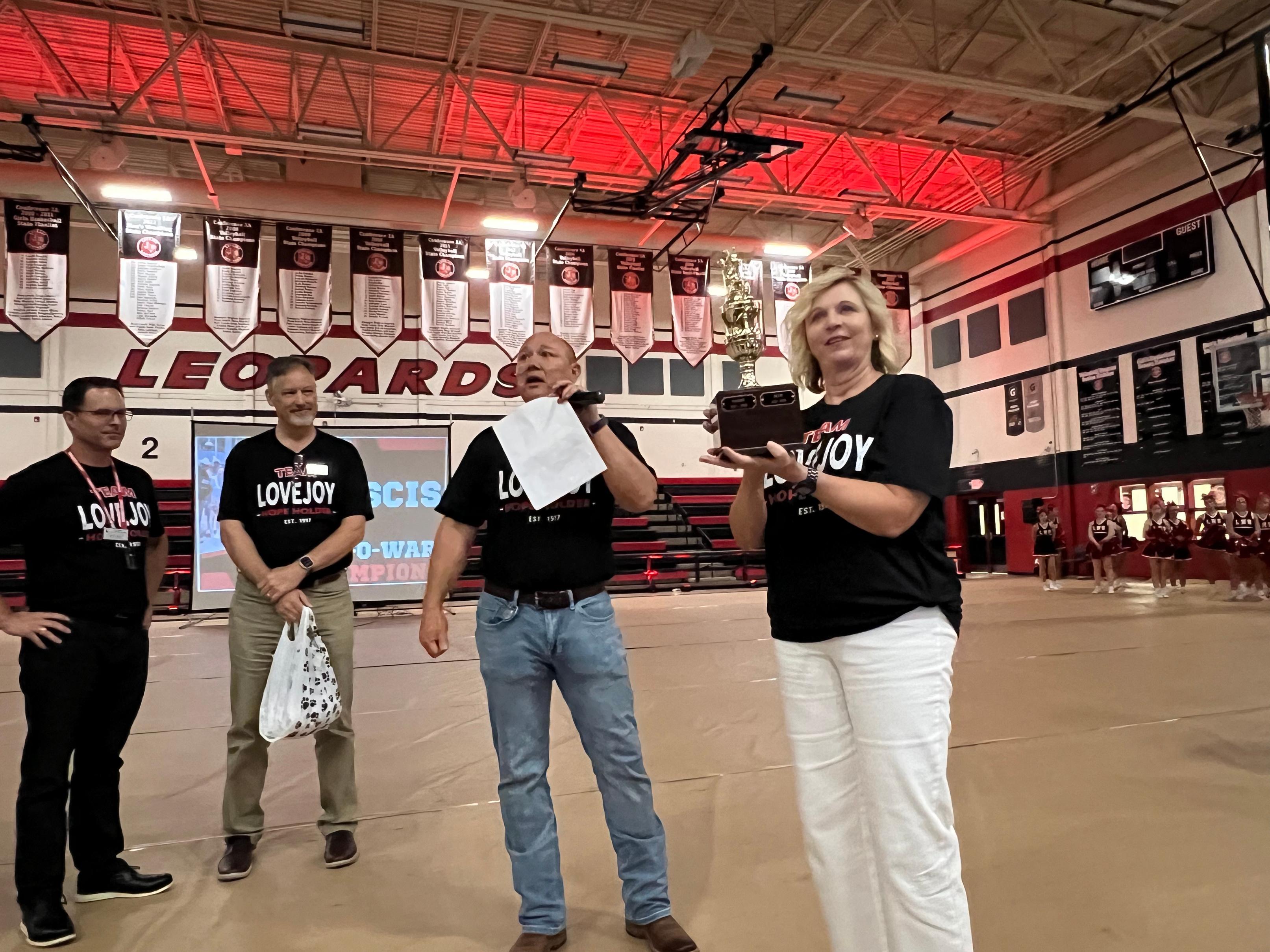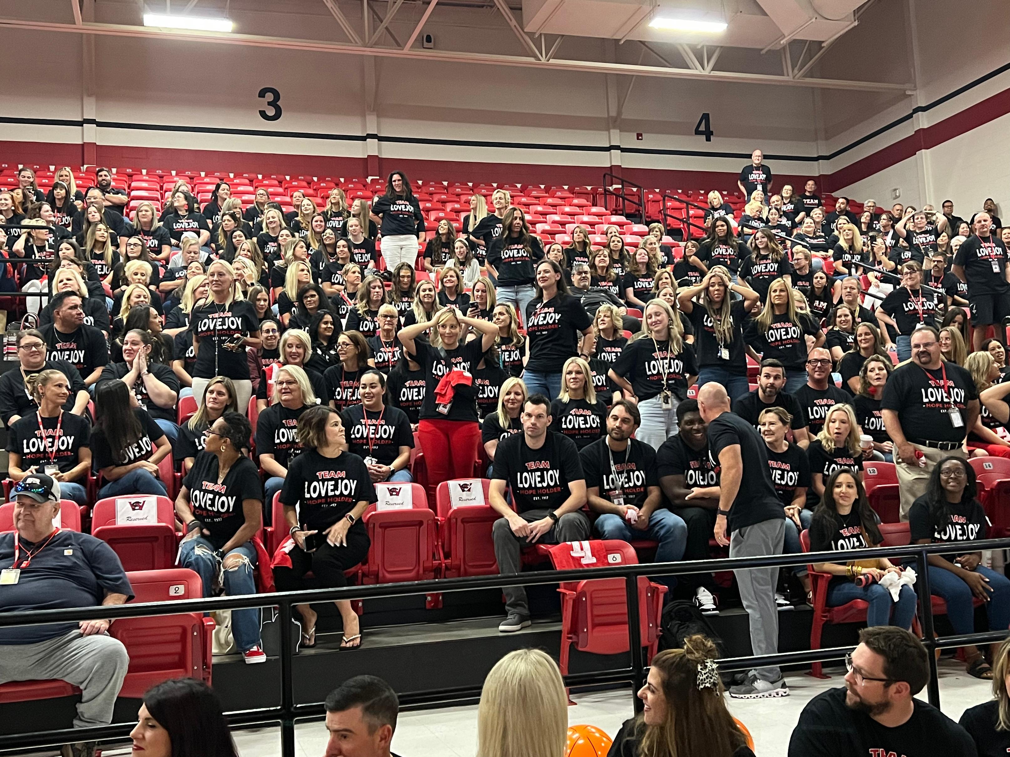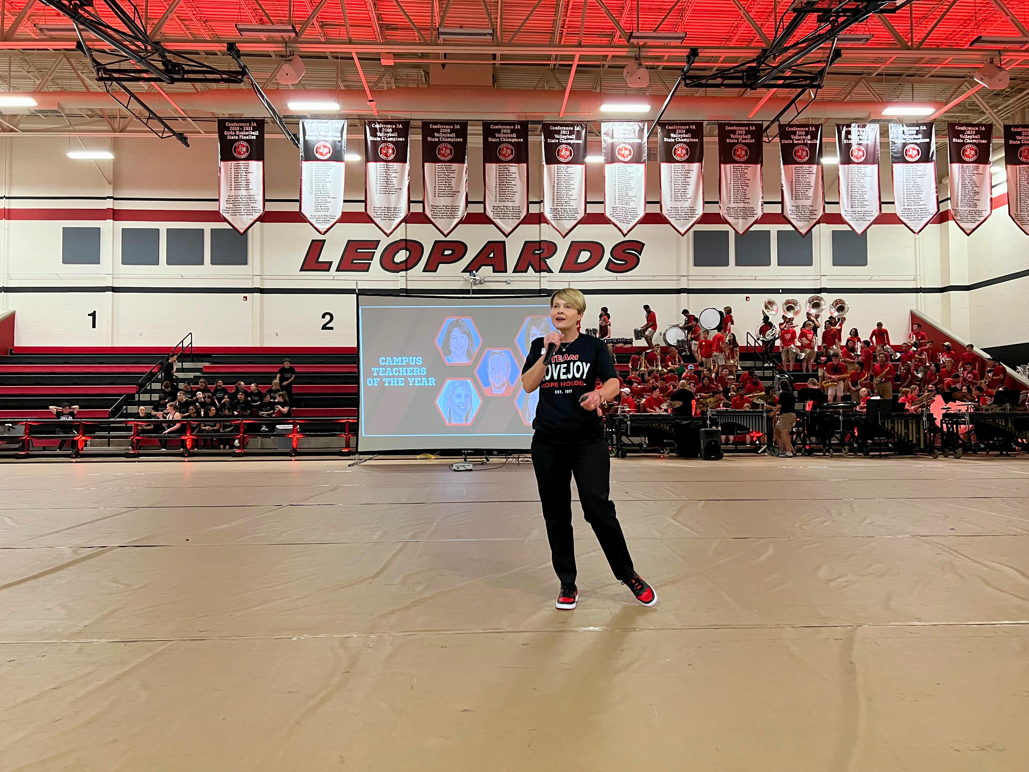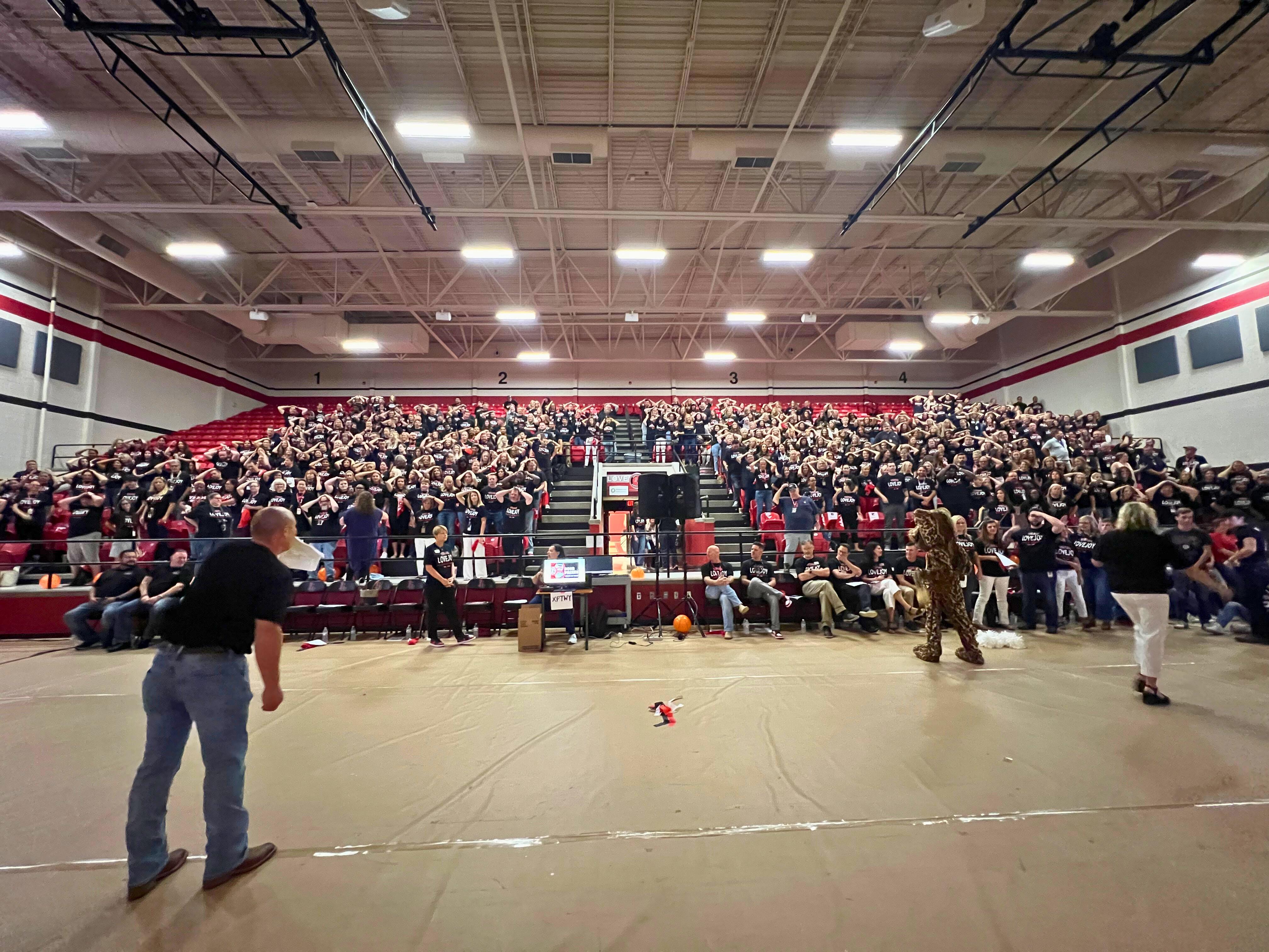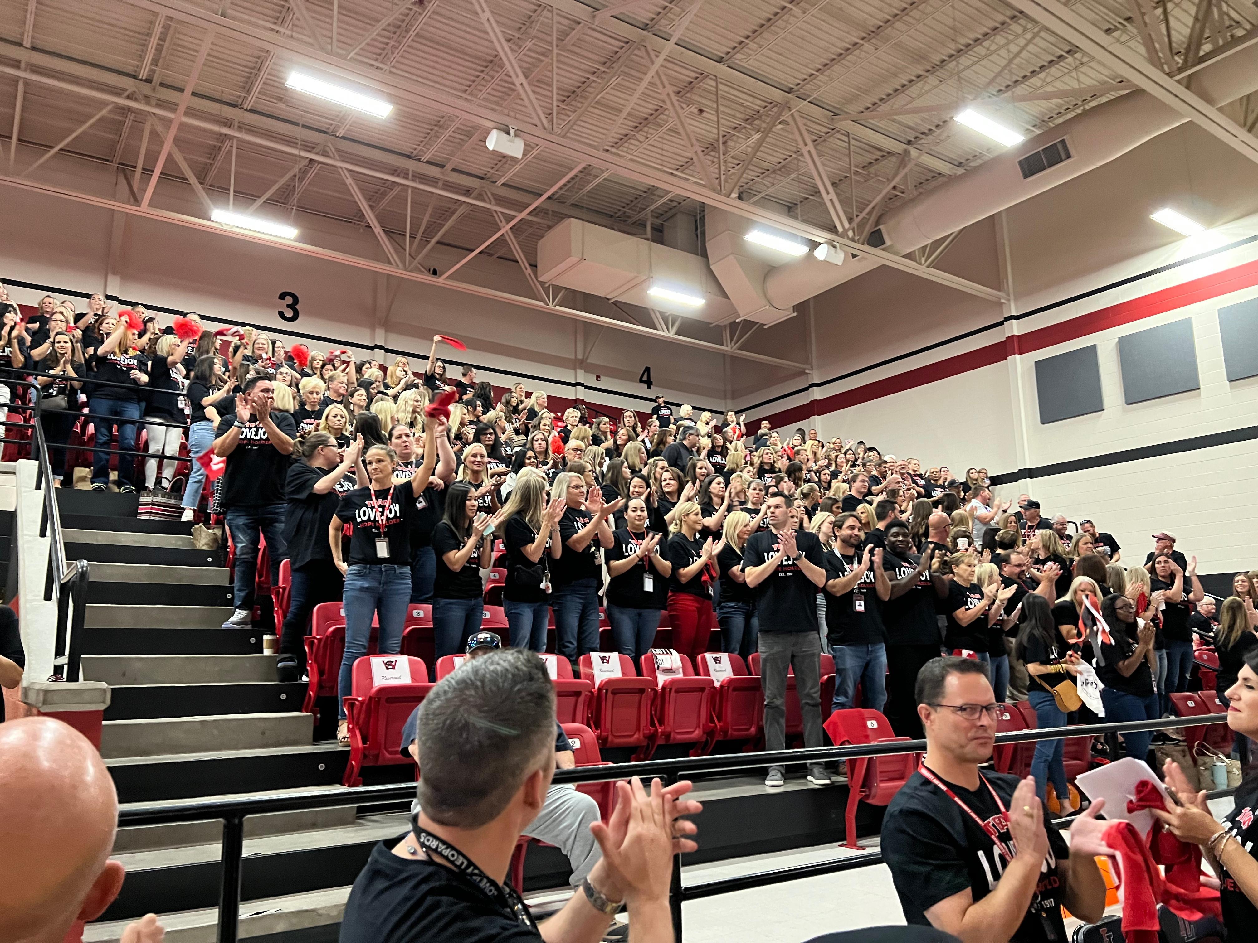 This morning, the entire Lovejoy ISD staff assembled in the Lovejoy High School gymnasium for our annual convocation. Convocation is our employee celebration to launch the start of the school year. We experienced phenomenal student performances by our orchestra, color guard, band, cheerleaders, Majestics, and A Capella choir. The high caliber of these student programs is a testament to the investment and commitmentoftheiroutstandingdirectorsandcoach.