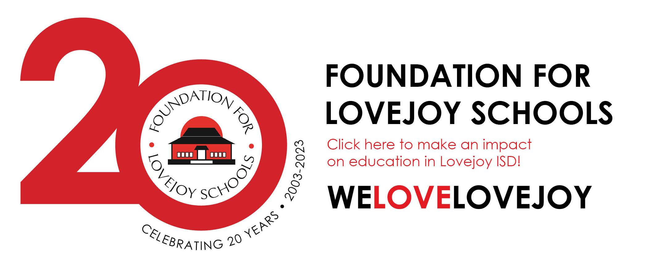 TheFoundationforLovejoySchoolsisexcitedtocelebrateour20thanniversaryofenhancing educationinLovejoyISD!TheFoundation,anon-profitdedicatedtoempoweringstudentsand teachers,iscommittedtomaintainingLovejoyISD’spositionasatop-rankedschooldistrict.