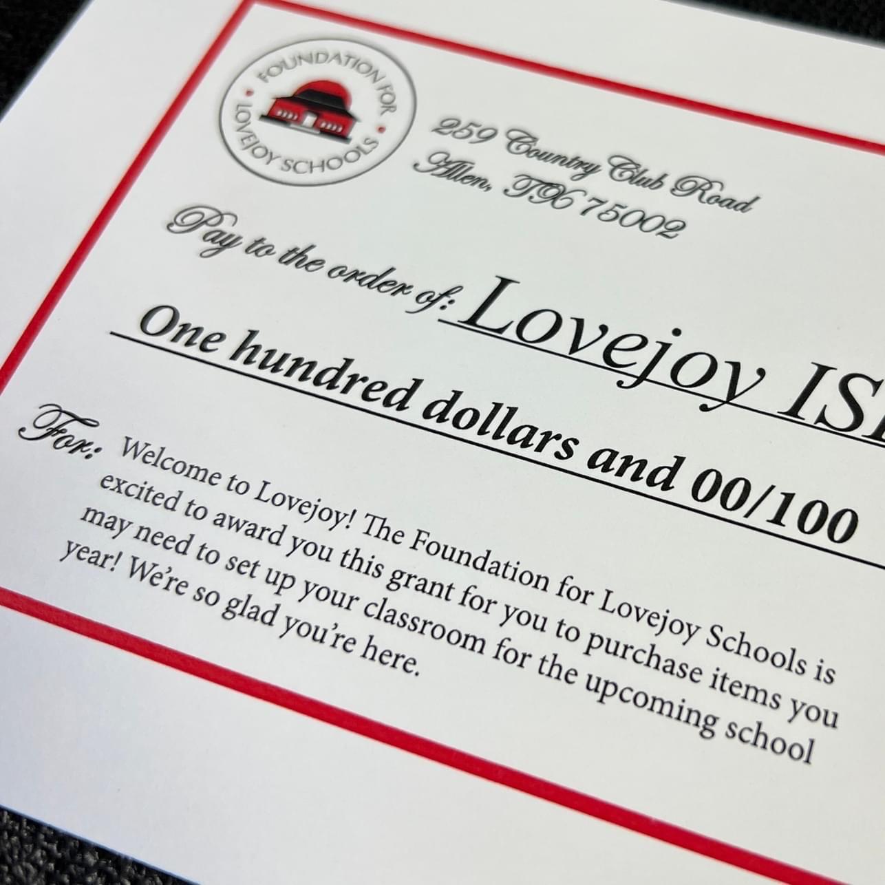 Becauseofyourgenerosity,TheFoundationforLovejoySchoolswasabletogrant each new educator to the district $100 to get their classrooms up and running. Thankyouforsupportingourteachersandstaff!