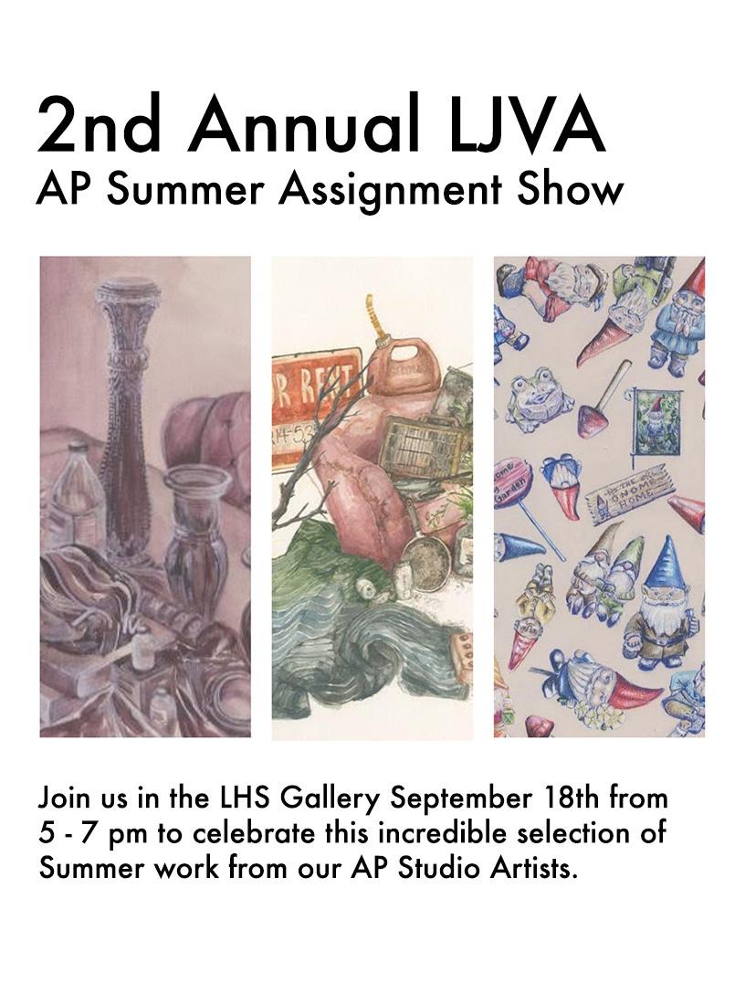 The Lovejoy Visual Arts program is thrilled to announce the opening of the 2nd AnnualAPSummerAssignmentShowonSeptember18th,from5-7pm!