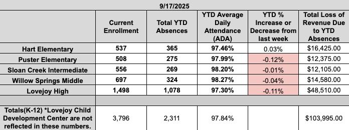 Strong school attendance is correlated with higher academic performance. Additionally,averageDailyAttendance(ADA)isametricthattheStateofTexas usestodeterminefundingforpublicschools.Eachweek,thisattendancedata willbeupdatedsoourcommunityisawareofourmostrecentADA.