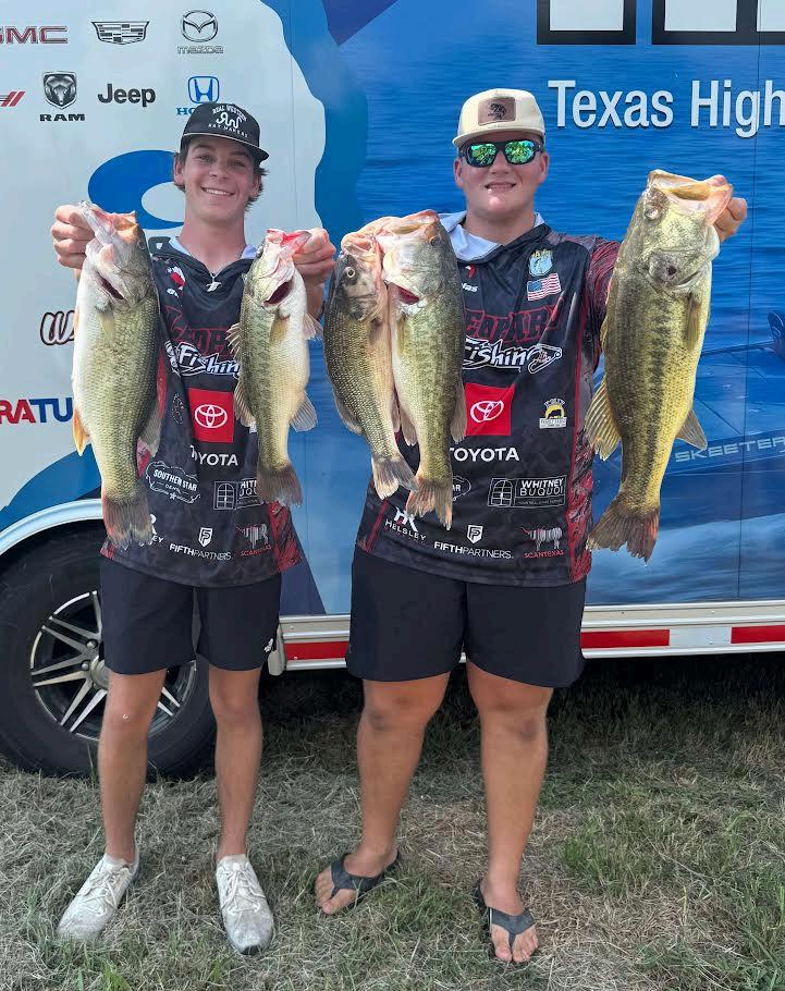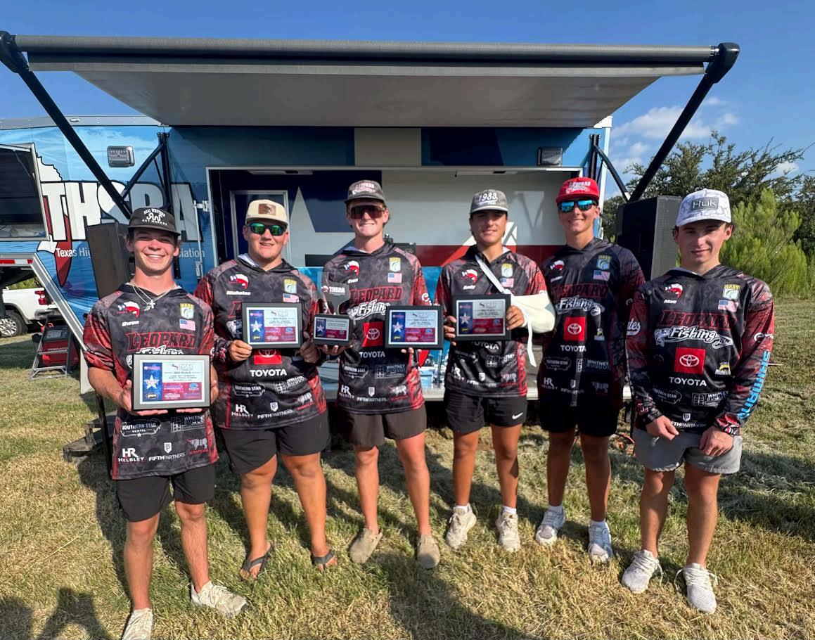 LeopardFishingisbackonthewaterparticipatingintheTexasHighSchoolBass Association (THSBA) Tournaments. Our first tournament of the season was held this past weekend and Leopard Fishing showed up! There were 215 boats participating in the North Texas Division and Leopard Fishing brought home the TeamoftheTournamentTrophyforfirstplaceweighing-in41.72lbs.collectively.