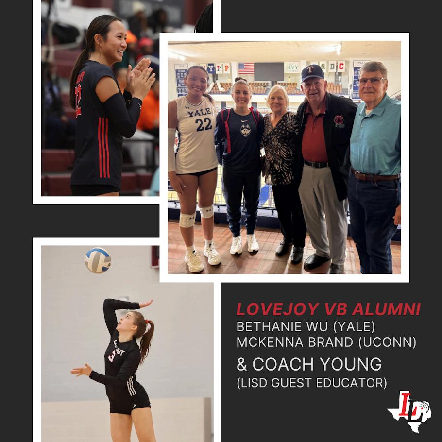 In addition, Lovejoy Volleyball loves to celebrate its alumni! Over the weekend, graduates Bethanie Wu (Yale University) and McKenna Brand (University of Connecticut) reunited on the court as competitors. Also joining them was Coach Young,abelovedguesteducator,whotraveledtosupportthematch.CoachYoung has been an incredible champion of the Lovejoy Volleyball program both inside andoutsidetheclassroom,andtheprogramisgratefulforhiscontinuedsupport oftheathletes,nearandfar!