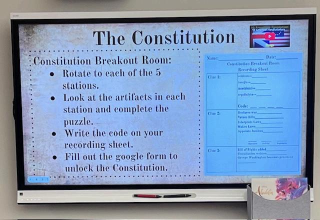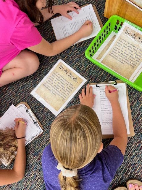 During Celebrate Freedom Week, fourth grade students at Hart Elementary dove into an exciting Social Studies breakout room challenge! Collaborating in teams, they solved clues to "unlock" the Constitution while deepening their understandingofkeycivicconcepts,includingfreedom,theConstitution,theBill of Rights, the branches of government, and the Amendments. In the classroom, students also worked hard to learn and recite the Preamble. This hands-on, immersive experience brought history to life and celebrated the core values that shapeournation