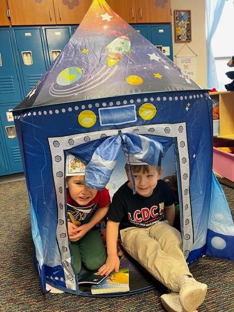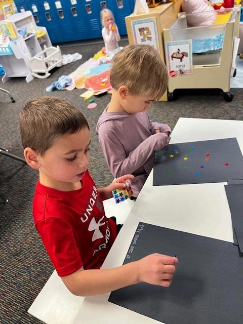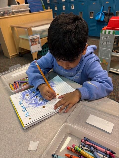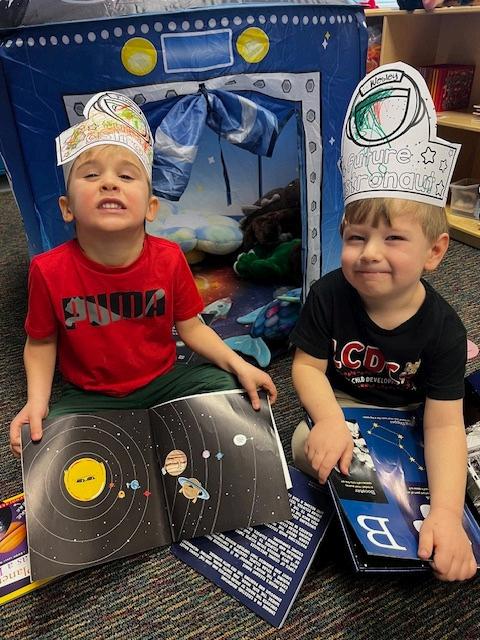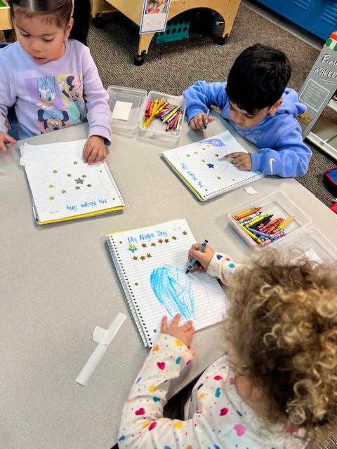 Youngastronomersalsobuiltlistening,speaking,andvocabularyskillsasthey participated in conversations, songs, and read alouds connected to our celestialtheme.Journalingofferedadditionalopportunitiestopracticewriting andfine motordevelopmentinapurposeful,age appropriateway.