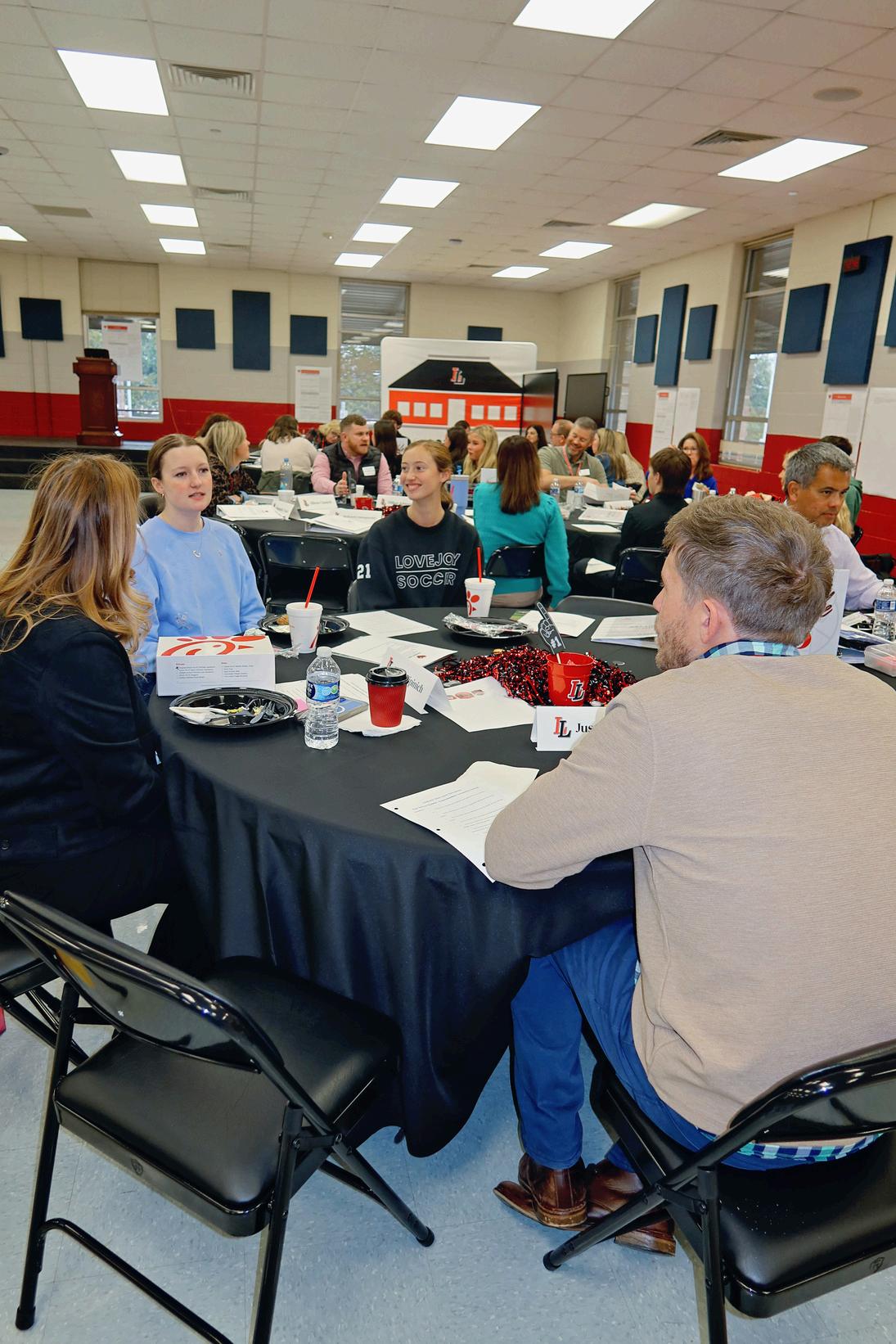 Day 1 focused on setting the foundation for our work. Committee members reviewed the purpose of LOVEJOY 2030, reflected on our current state, and examined progress toward existing strategic priorities. Through small-group rotations, participants engaged in focused conversations aligned to our core valuesincludingKidsComeFirst,BestToday,BetterTomorrow,andOneHeart, One Lovejoy. A highlight of the day was lunch with Lovejoy High School students, providing an authentic student perspective that helped ground our discussionsinwhatmattersmost,ourlearners.