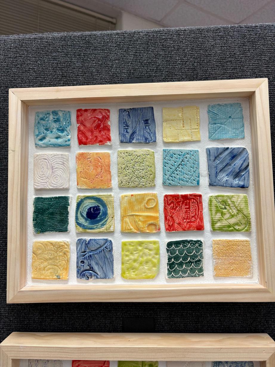 Once the tiles were created and fired, Lovejoy Visual Arts Gallery managers curated the work into 20 compositions, carefully installing and grouting the tilesintohandmadeframes.InrecognitionofLovejoyISD’s20thanniversaryas a K–12 district, each completed piece is composed of 20 tiles representing contributionsfromacrossourK-12campuses.