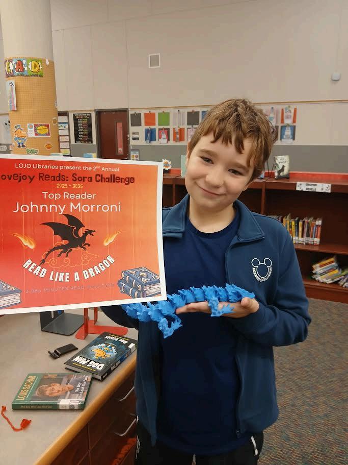 The Lovejoy Reads: Sora Challenge has ended, and it's time to announce the results!Overthe65-daychallenge,LovejoyISDreaderslogged5,042hourson Sora, our district digital reading platform! This is a 34% increase from last year’sreadingcompetition.