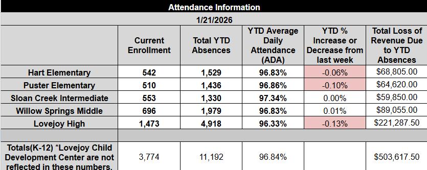 Strong school attendance is correlated with higher academic performance. Additionally,averageDailyAttendance(ADA)isametricthattheStateofTexas usestodeterminefundingforpublicschools.Eachweek,thisattendancedata willbeupdatedsoourcommunityisawareofourmostrecentADA.