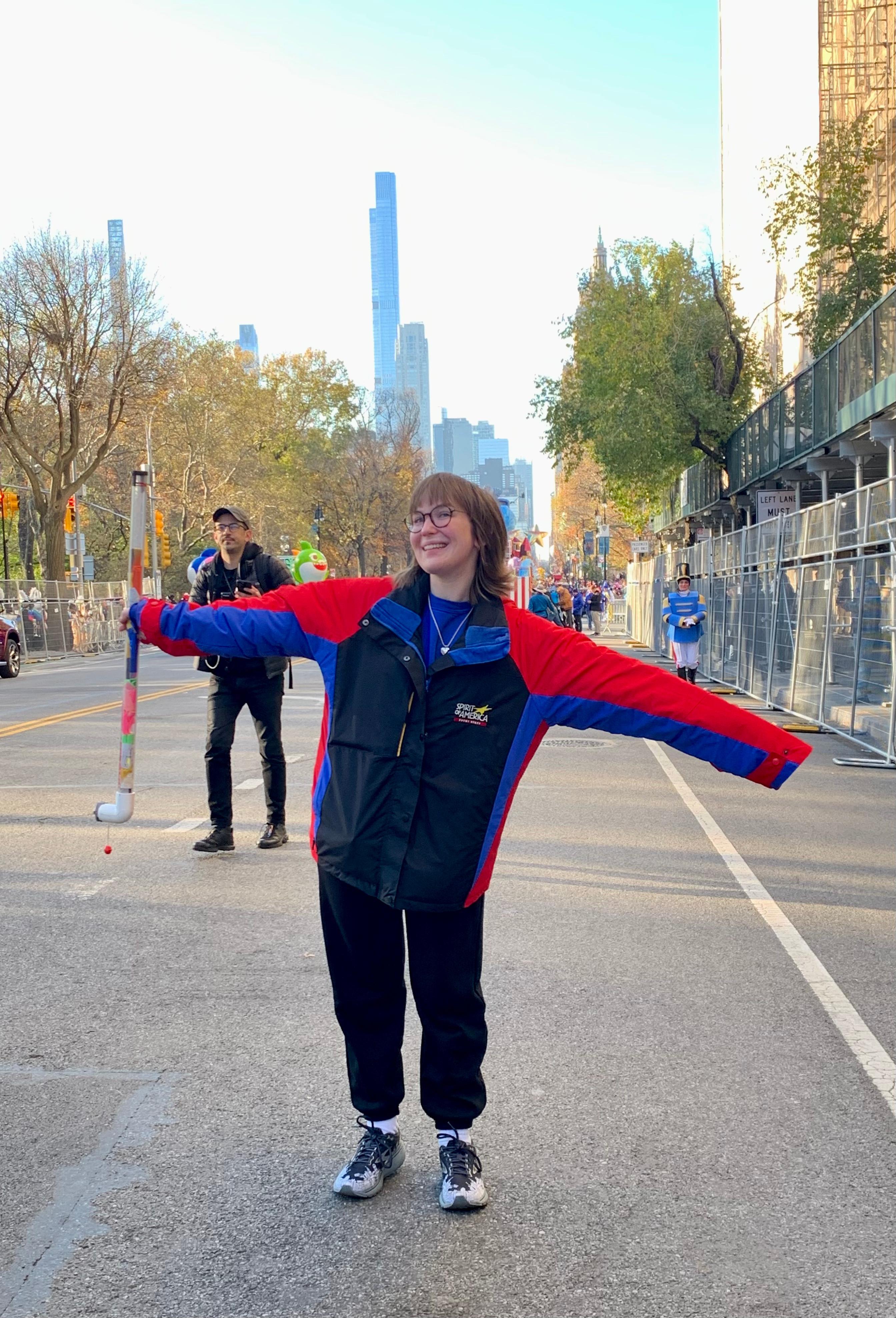 Kynan Lowrance was an intern with Spirit of America to research a career in producing parade performances for her senior project, and she got to shoot confetti at the Macy's Day parade as part of her internship!
