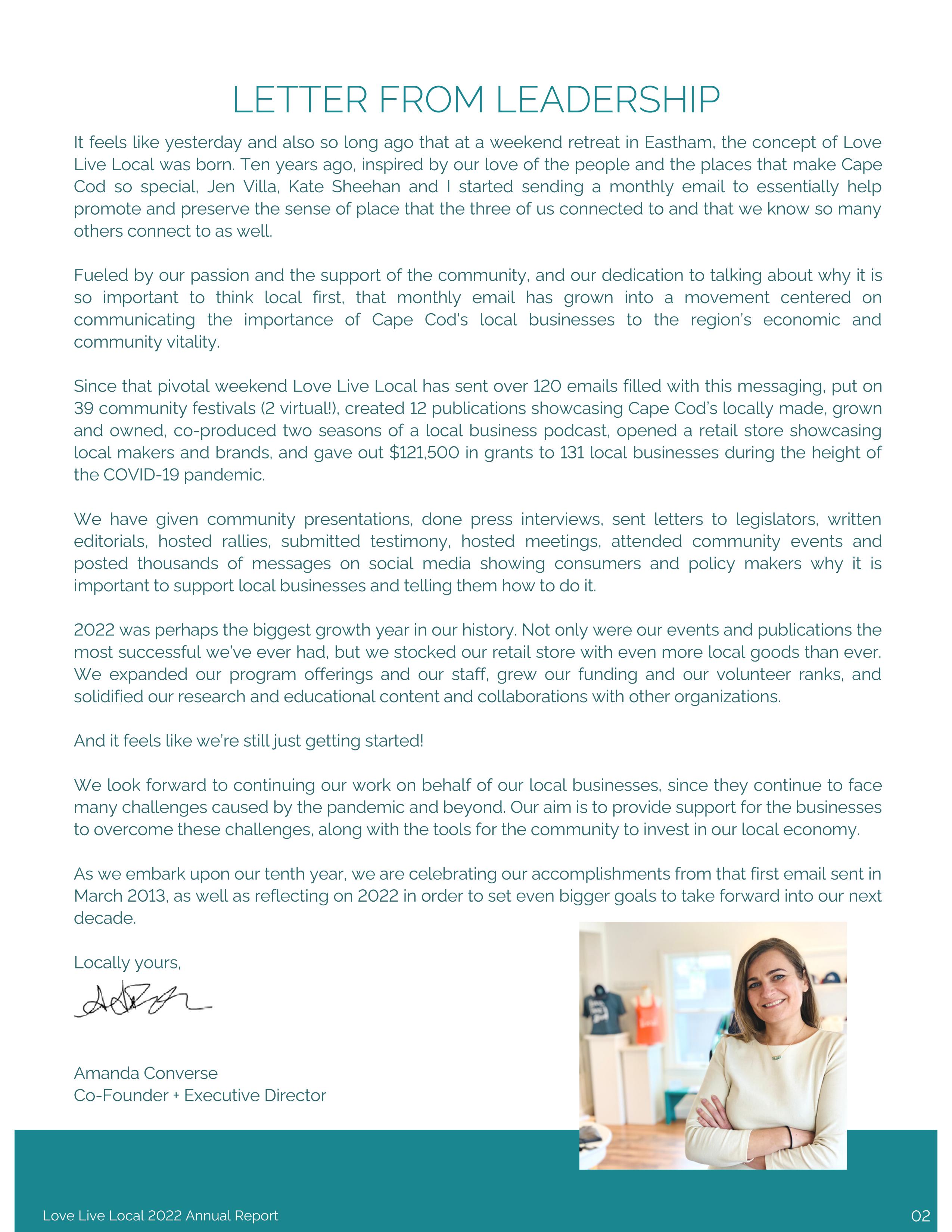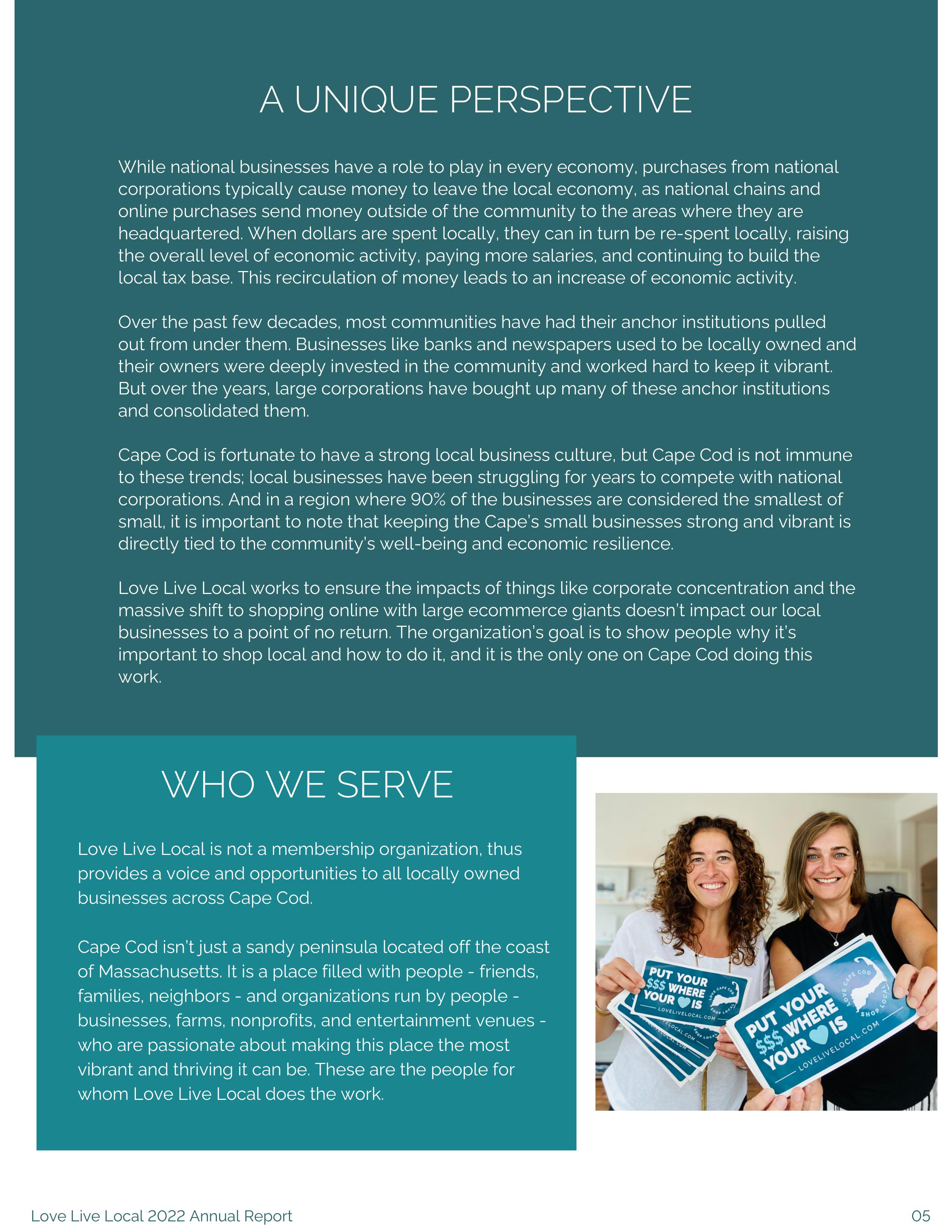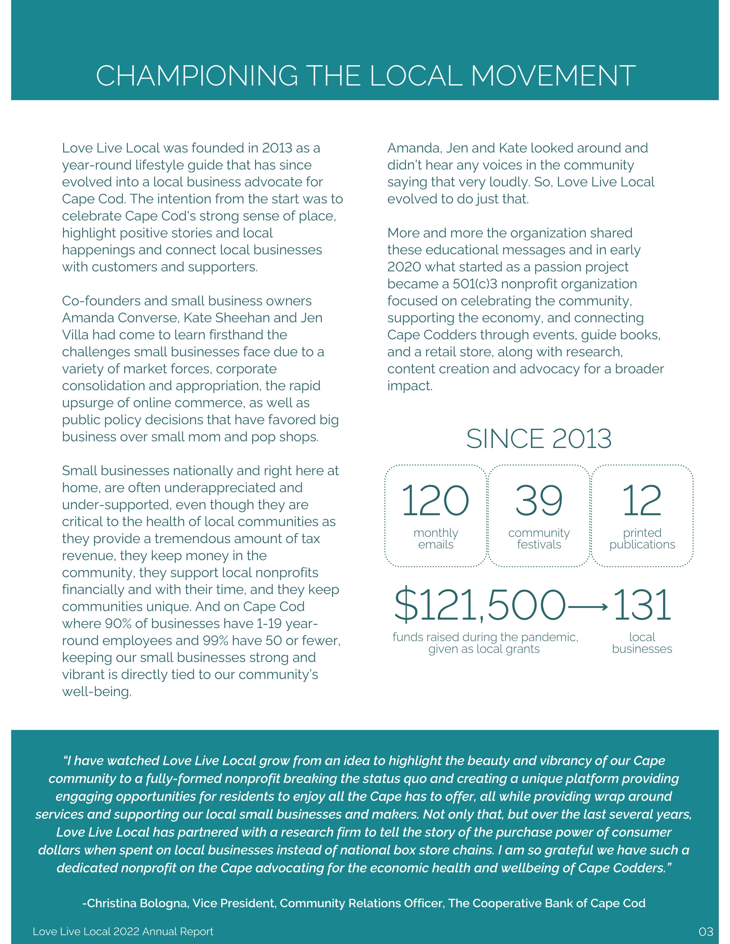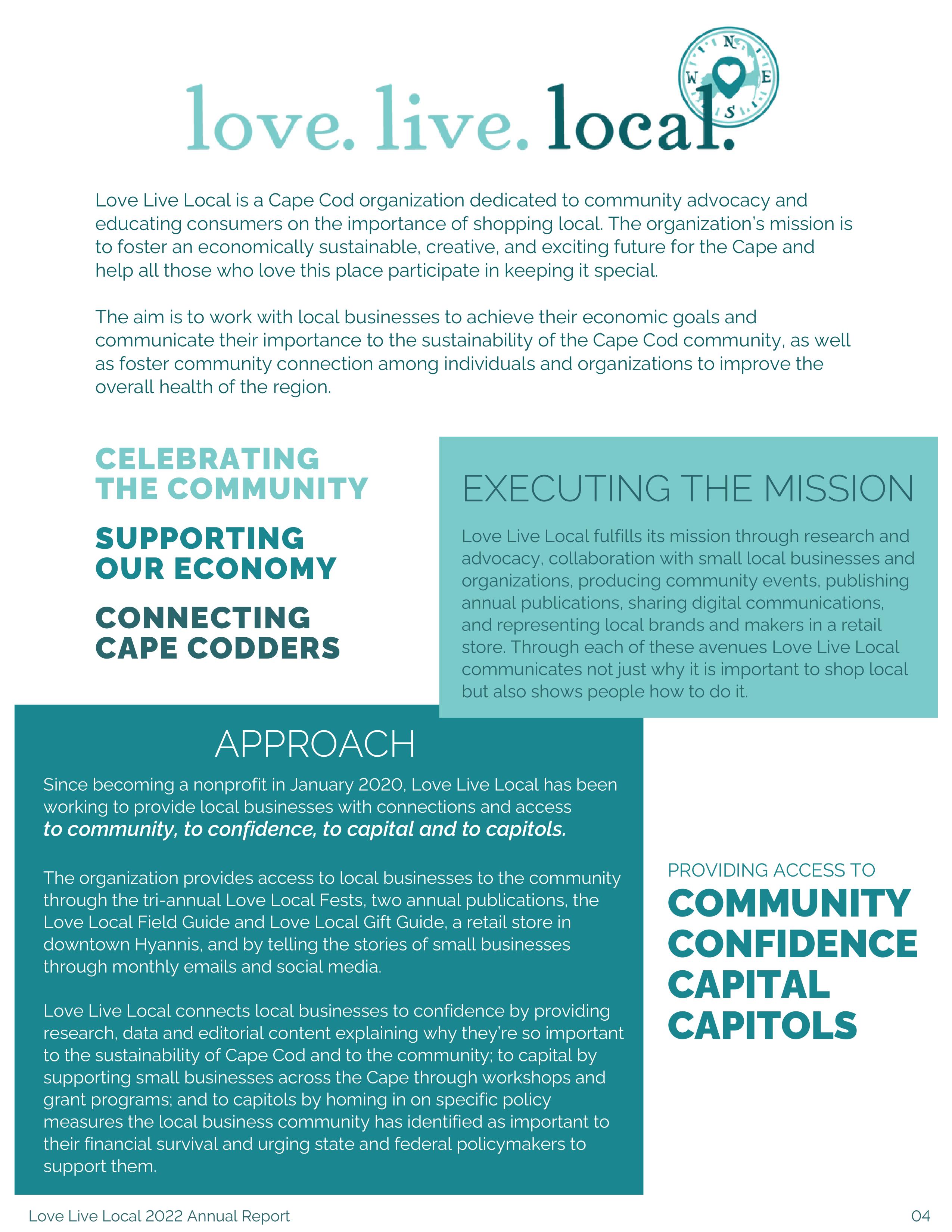 2022 was a year of continued growth for Love Live Local as the organization launched new programs, brought on new staff, and embraced the thousands of people seeking out its events, publications, and messages about the hows and whys of shopping local.