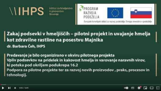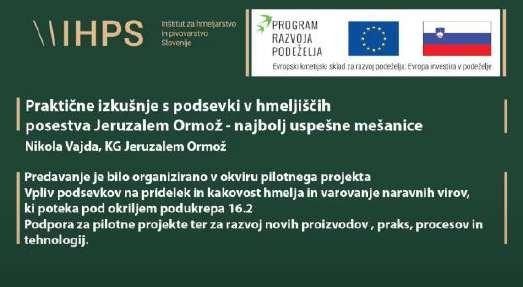 IHPS je vodilni raziskovalni inštitut za hmeljarstvo in pivovarstvo v Sloveniji, ki se ukvarja s številnimi raziskovalnimi projekti na področju izboljšanja kmetijskih praks in uvajanja inovacij. S svojim delom prispeva k razvoju trajnostnih tehnologij v kmetijstvu, zlasti v hmeljarstvu. IHPS sodeluje pri prenosu znanja in tehnologij kmetom, organizira izobraževanja in delavnice ter sodeluje pri nacionalnih in mednarodnih projektih za razvoj kmetijstva. Vodja projekta je bila dr. Barbara Čeh.