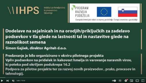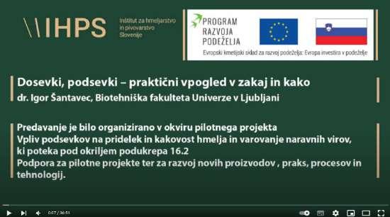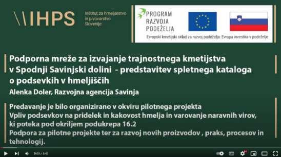 V video vsebini g. Šantavec spregovori o podsevkih, dosevkih in sosevkih in njihovi vlogi, ki se je v zadnjih letih razširila tudi na uporabo, ki ni vezana le na hmeljišča. Osvetli veliko praktičnih zgledov, kar pa obogati z zanimivim slikovnim materialom podsevkov v različnih letnih časih.