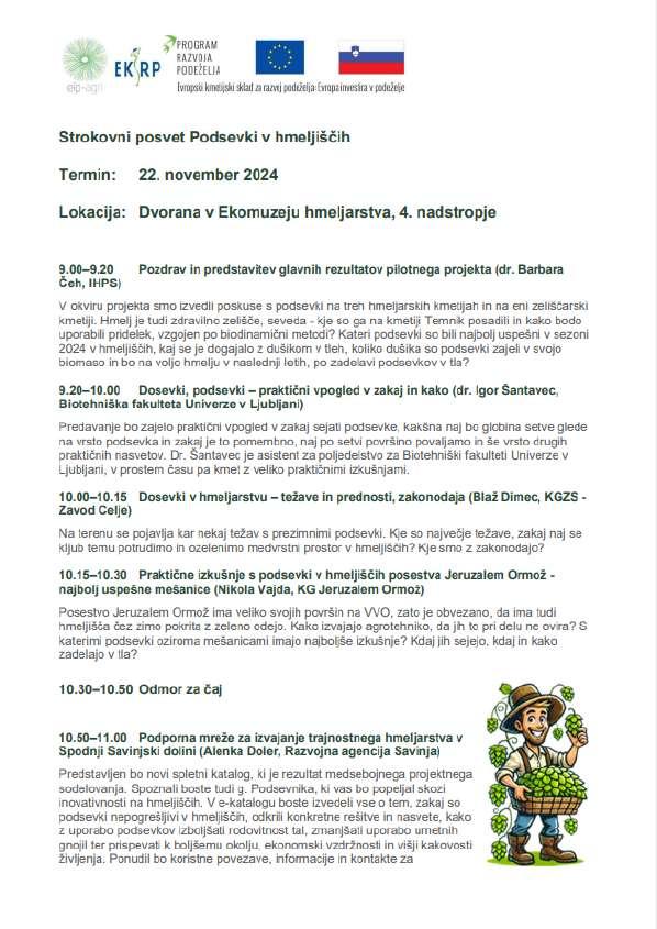 Kmetija je sodelovala na usposabljanjih za izboljšanje tehnologije pridelave hmelja s ciljem ohranjanja in izboljševanja pridelka ter kakovosti pridelanega hmelja z vključevanjem