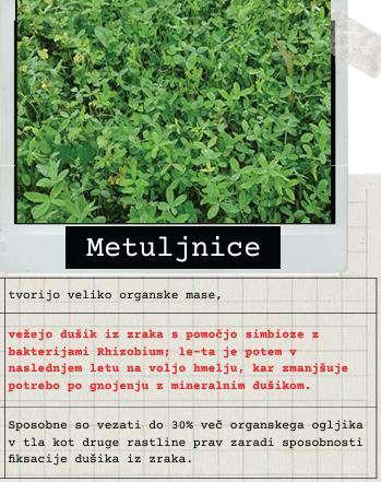 dobra pokrivnost tal zmanjša zapleveljenost in ščiti zgornjo „dragoceno“ plast tal pred erozijo z vodo in vetrom metuljnice kot dosevki vežejo zračni dušik in pretvarjajo v rastlinam