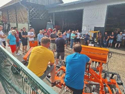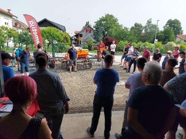 V okviru projekta je podjetje Agriteh izvedlo dodelave na sejalnicah in orodju za zadelavo podsevkov v tla na različnih tleh. Na fotografiji je direktor Simon Gajšek med predstavitvijo njihovega dela na tem področju.