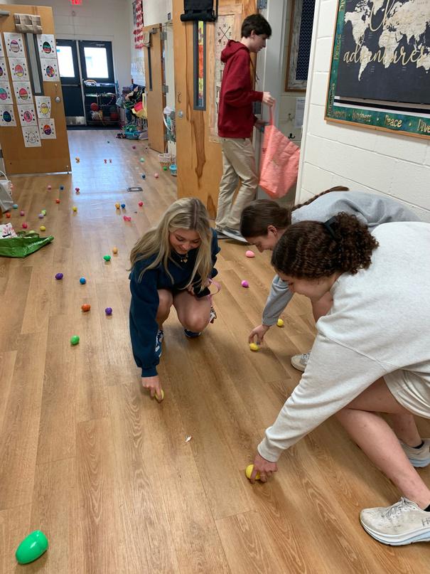 In a heartwarming display of school spirit, seniors generously volunteered to hide the 1700+ eggs, arriving promptly at noon to ensure the festivities could proceed as planned. Their enthusiasm and dedication added to the anticipation, setting the stage for a memorable event within the confines of our school walls. Though the weather may have changed our plans, the joy of the hunt prevailed as children scoured the halls and classrooms in search of colorful eggs.