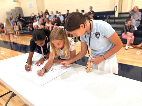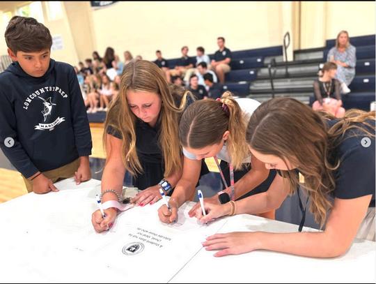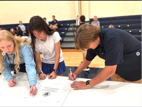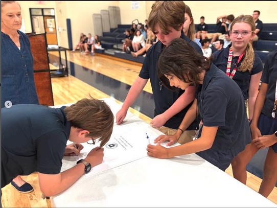 Upper & Middle school students sign a pledge to follow the Honor Code: