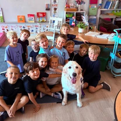 Our Lower School Students welcomed back our READ dogs! These are dogs who come on campus once a week so that students can work on their reading skills with a furry friend.