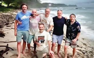 TIM MCKEAGUE ’91 went on a surf trip with a group of friends and alumni in Nicaragua last fall. (Photo 1) (L TO R)