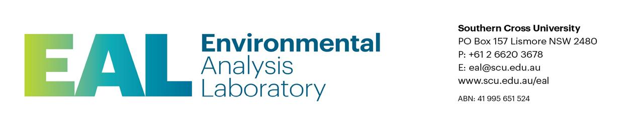 14. All services undertaken by EAL are covered by the EAL Laboratory Services Terms and Conditions (refer scu.edu.au/eal).