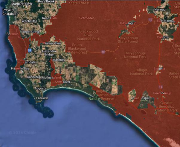 The SCP is a 105000 hectare area in south west Western Australia. The SCP is incredibly special and unique, both environmentally and culturally. The Scott River Ironstone Threatened Ecological Community is also present within the SCP. There are 26 fauna species listed as threatened, priority or under protection in the SCP such as the Australasian Bitten (Endangered), the Forest Red-Tailed Black Cockatoo (Vulnerable) and the Carnaby’s Black Cockatoo (Endangered).