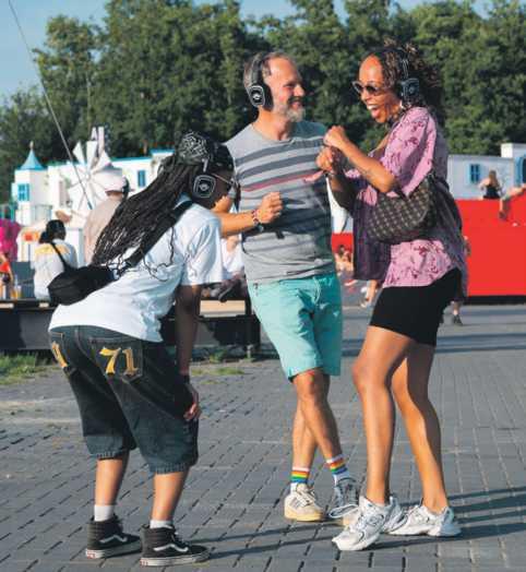 Dat je al op de donderdag zó ongegeneerd uit je snelkookpan kan gaan, in stilte: het blijft een klein mirakel. Geslaagd partijtje dus, die Lowlands Headphone Disco in Bravo en India. We zijn er nog een beetje verkreukeld van. Hoe beleefde discoganger Sem (19) uit Amsterdam dat? ‘Het is heerlijk om over het terrein te fladderen. Niets is gaver dan in de avond aan iemands koptelefoon kunnen zien datie uit zijn dak gaat op hetzelfde nummer als jij.’ Ook de Rotterdammers Naomi (24), Noa (21) en Michiel (42) zitten lekker in hun eigen muziekwereldje, samen met 30.000 andere gelukkigen. Of nou ja, samen … ‘Soms is het wel een beetje lastig communiceren’, zegt Naomi. En op welk nummer gaan zij dan helemaal buiten hun boekje? Ze hebben alle drie eigenlijk geen idee, maar het blauwe kanaal is erg lekker. Kortom, er is in stijl afgetrapt – we kunnen met vertrouwen het weekend in. Koptelefoon vergeten in te leveren? Geen probleem, dat kan vandaag nog tot 12:00 bij de informatiebalie tussen Camping 2 en 3. (SB/KD)