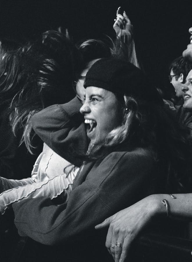terug in hun gezichtsuitdrukking. De gitarist trok een moeilijke kop bij zijn ingewikkelde solo’s, de bassist zag er gewoon cool uit en de drummer was een héle mooie man.