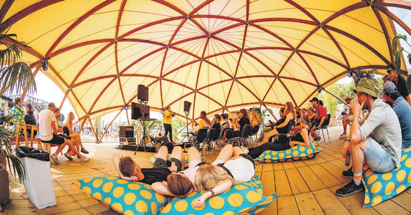 Het meest geestverruimende middel van Lowlands? De Nederlandse letteren! Voor de boekenwurmen die treuren dat ze hun dikke pil hebben thuisgelaten, is festival-oase LL Bookstore in Adonis een moetje. Tijdens Bakkie LLit (10:45) haal je er een broodnodig shotje cafeïne onder het genot van spoken word van Poetry Circle en een diep gesprek van literaire barista Teddy Tops met Slimste Mens Martin Rombouts. Wat te denken van een ontleding door VPRO Club Lees x Elmer (12:00, zie pag. 11) van het urgente boek Man maakt stuk van schrijver/ journalist Maurits de Bruijn? Leer