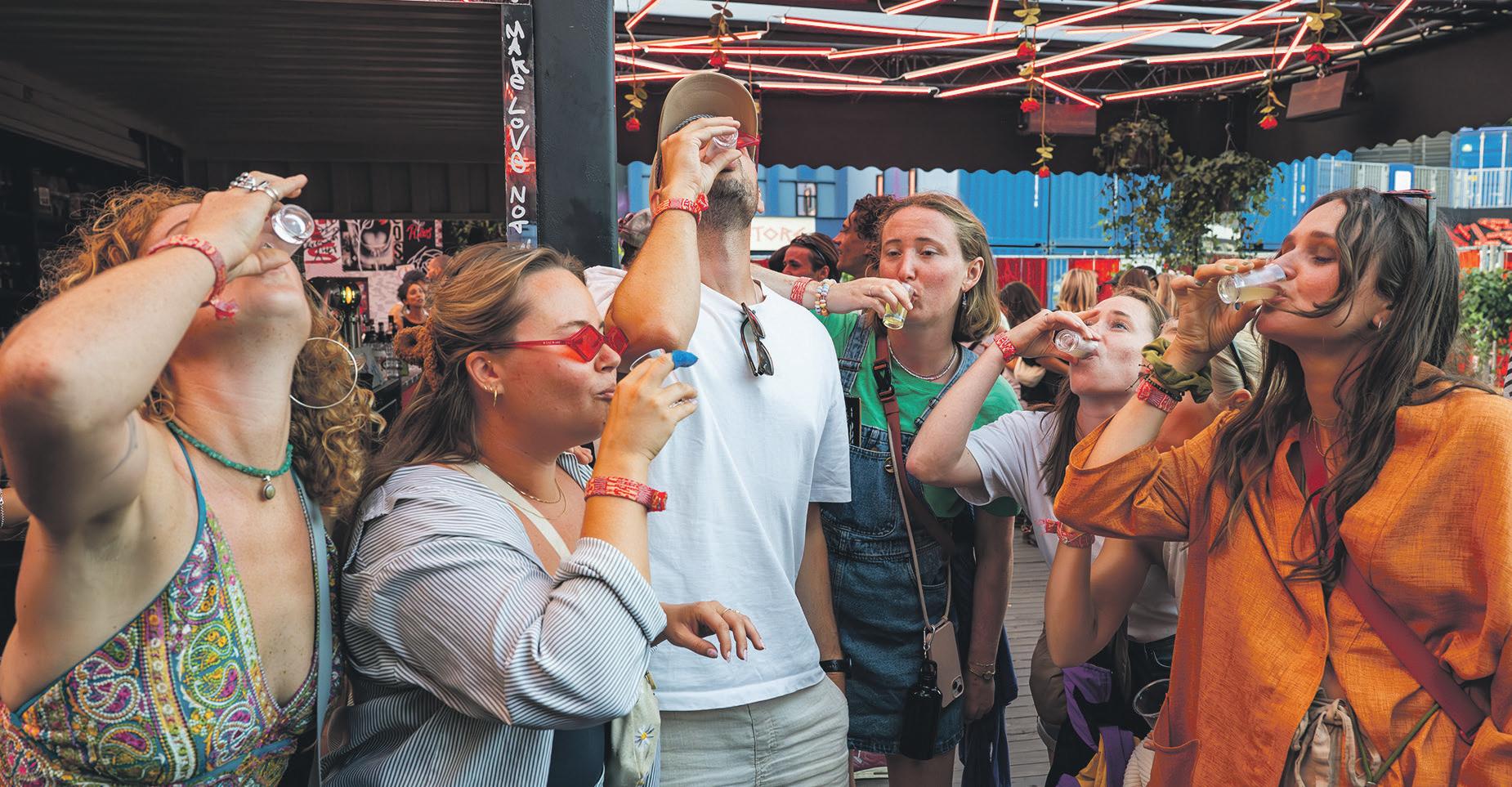 paar. Salmari is de grote favoriet. Tessa, die speciaal voor het festival uit Spanje is overgekomen, slaat de tequila over. ‘Daar krijg ik hoofdpijn van.’ Gelukkig voor haar kan ze hier overdag ook kiezen voor een gembershot. Of misschien wel de Zuid-Amerikaanse maté-guarana thee. Deze nieuwste trend voor opstarters in de ochtend geeft eenzelfde kick als koffie, maar zorgt ervoor dat je geleidelijker wakker wordt en klaar bent voor een nieuwe LL-dag. (MvH)