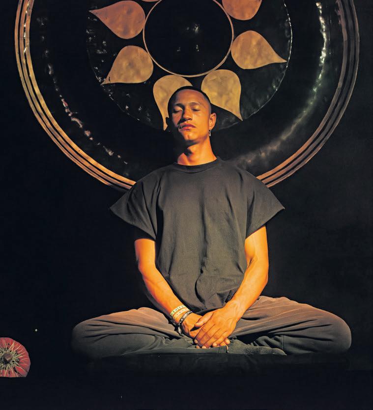 Stilte. Geen telefoons, geen alcohol, niet slapen, maar gewoon zijn in het hier en nu. Lowlands is een prikkelcircus dat van hoogtepunten aan elkaar hangt, maar hier in X-Ray zweef je naar een totaal andere wereld. De flakkerende kaarslichtjes in het midden vormen een landingsbaan, en zwijgend neemt iedereen plaats op een klein poefje. Rustgevende ambient klanktapijtjes rollen golvend over Lowlanders die de instructies van Bruno Sitton, de mønk van ZERØBPM , nauwgezet