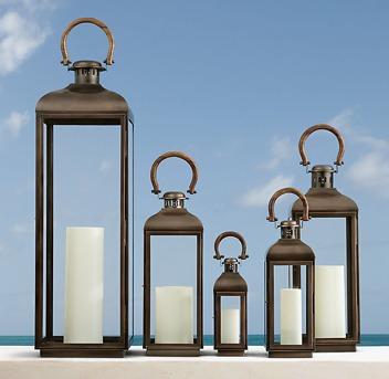 Stainless Steel Lantern in Weathered Bronze Finish with Metal Handle