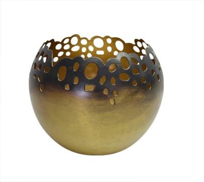 Round Antique Zinc and Gold Candle Holder with Cut Away Design