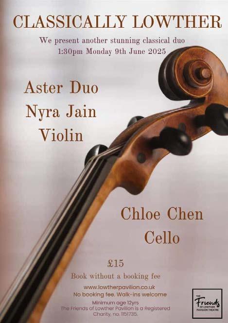 The Friends of Lowther Pavilion present the Aster Duo with Nyra Jain on violin and Chloe Chen on Cello.