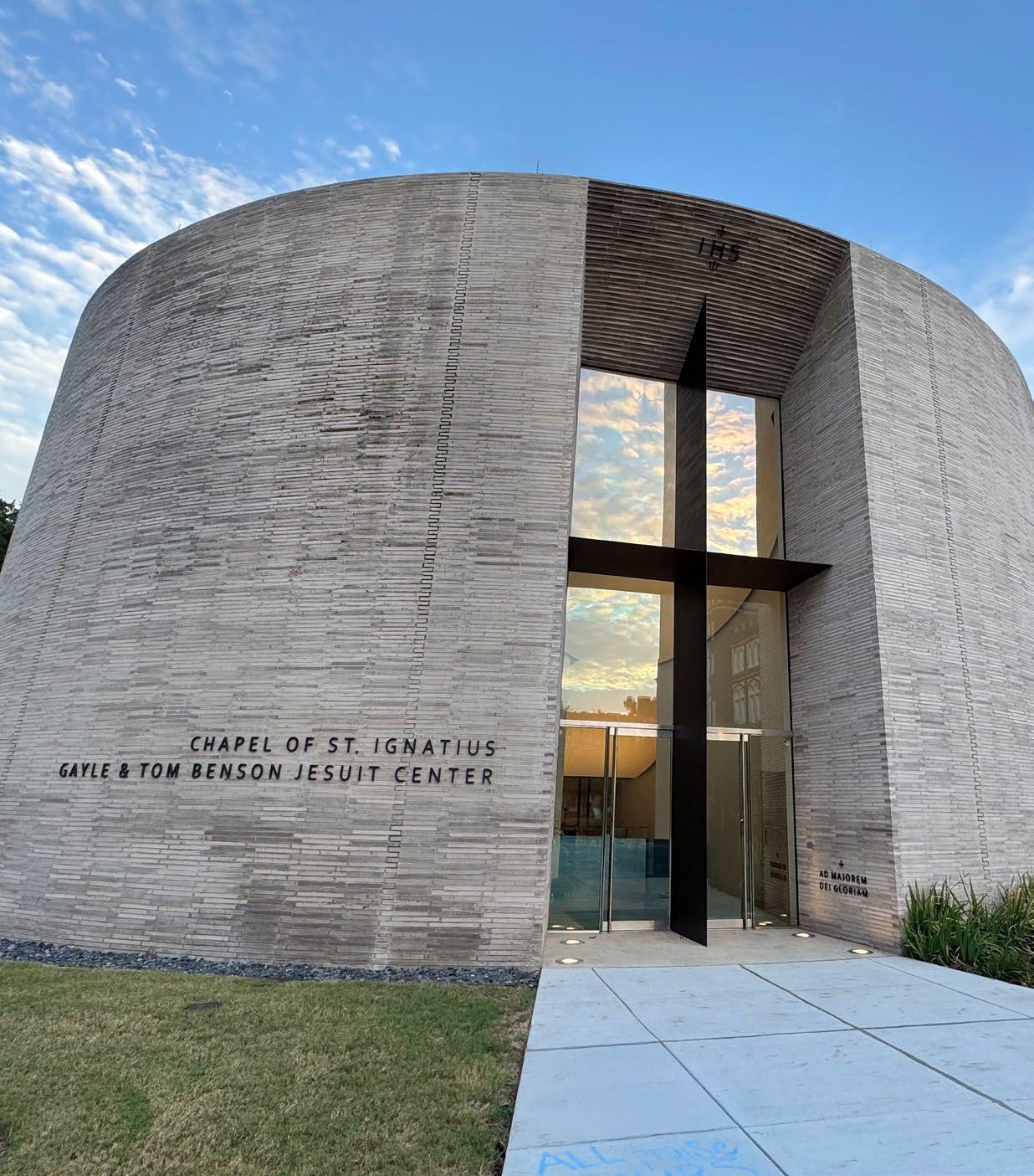 1 The Chapel of St. Ignatius was consecrated on July 31 with a Mass celebrated by Archbishop Gregory Aymond. Located in the center of campus, the circular-shaped chapel is situated outside of Monroe Hall and is fully operational after 15 years of planning and three years of construction and finishing touches.