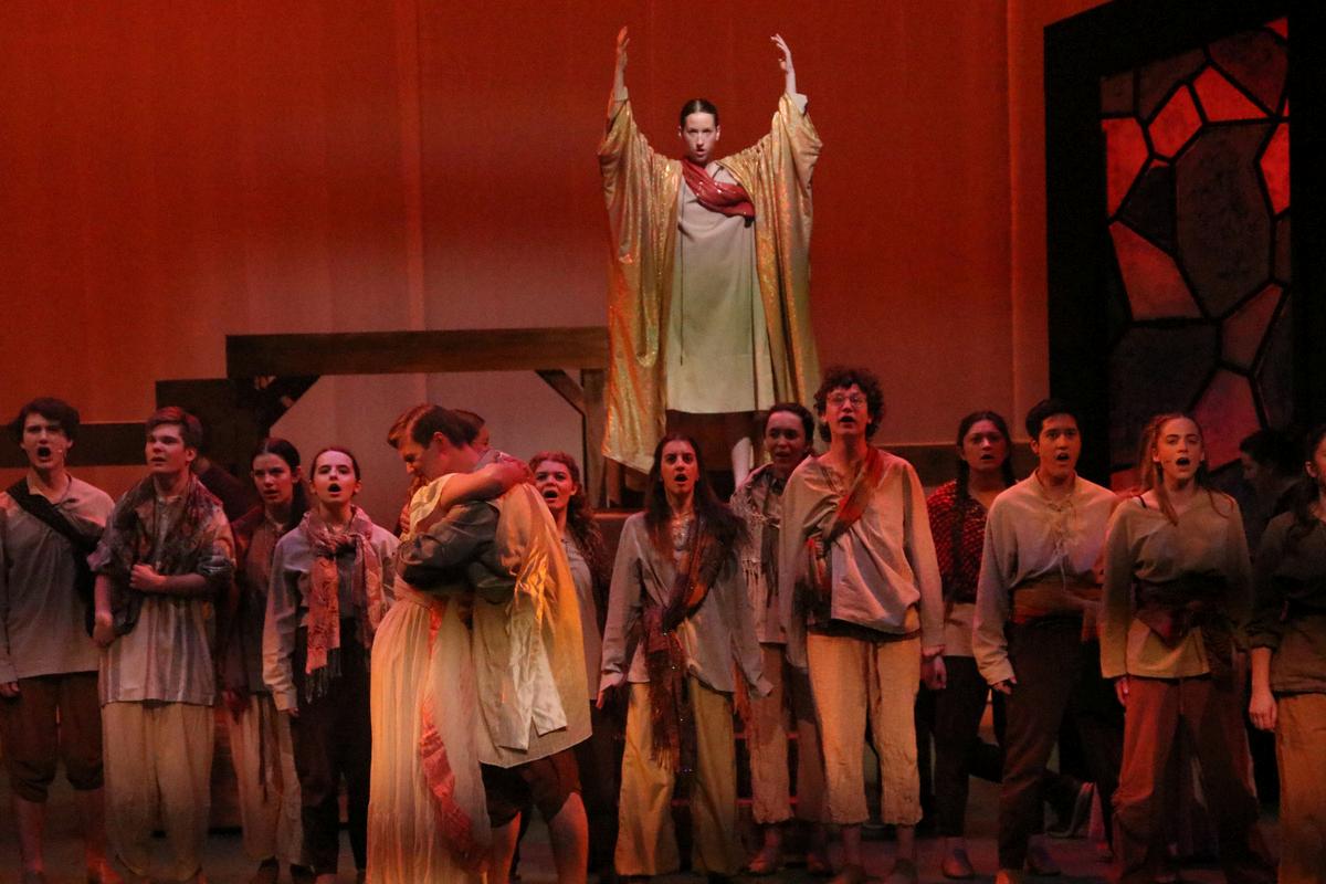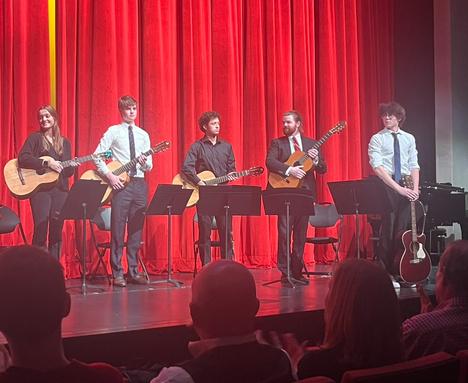 Next, Devion Johnson '24 played "When I am Dead My Dearest" on bass clarinet Then, Enoch Appiah-Kubi '24, Princess Ezenwanne '24, Melat Geberhiwet '24, Esther Ochang '24, Mayode Oluwole '25, and Mykael Russell '24 led our community in honoring the six U S Black Catholics on the path to sainthood