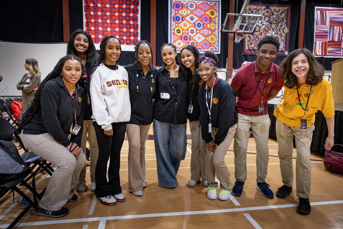 Ms. Sarah Bennett introduced keynote speaker Senite Barih '20, founder and chief financial officer of The.BlkRoom, a Chicago-based organization and community network facilitating opportunities for BIPOC artists and creatives. Senite spoke about her experience at Loyola Academy, including the many activities and student groups she was involved in, and closed the assembly with a special performance, singing "Lift Ev'ry Voice and Sing" and "Chaotic," an original song she wrote.