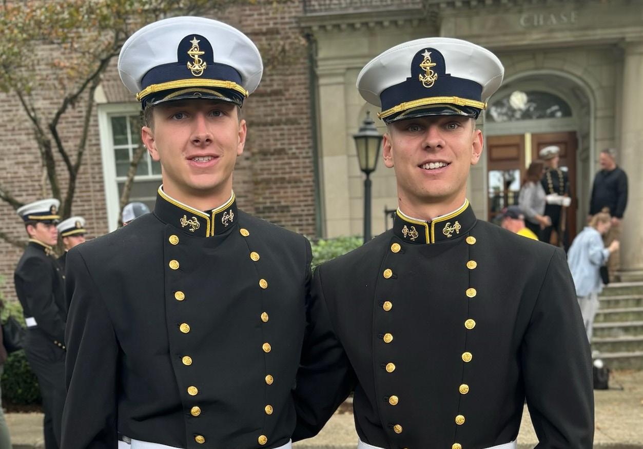 ERIC KEY ’23 & ANDREW ROWAN ’24 connected at the conclusion of their Regimental Review at the United States Coast Guard Academy. Regimental reviews help cadets develop poise, confidence, teamwork, and leadership through the exercise of command. They are a source of pride, esprit d ’Corps and connection with the Coast Guard’s military heritage.