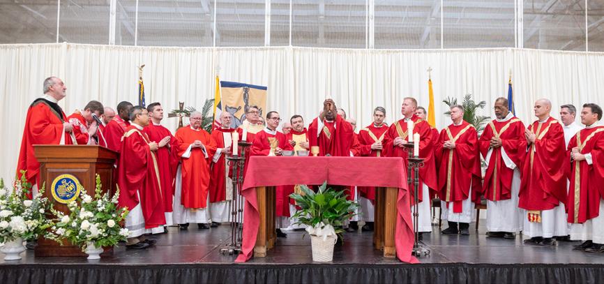 OPPOSITE: FR. BAKER’S NIECE, COLLEEN COLLINS AND DECLAN BELL ’24 (SGA PRESIDENT) PRESENT THE EUCHARISTIC GIFTS.